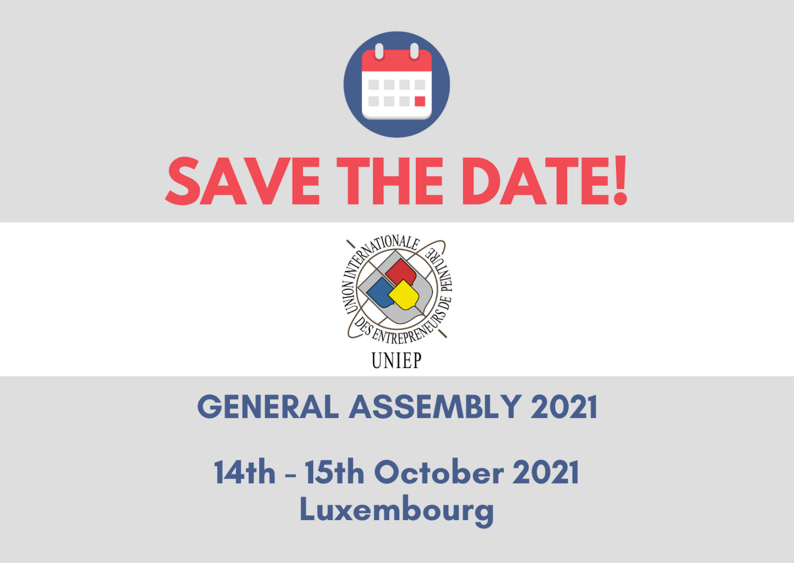 È con grande piacere che vi informiamo che l'Assemblea Generale UNIEP 2021 avrà luogo il 14 e 15 ottobre 2021 a Lussemburgo.