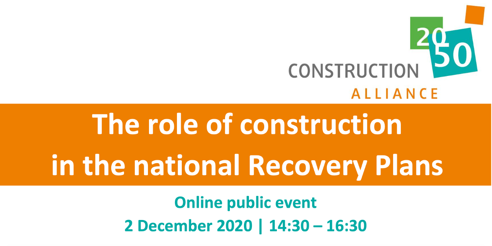 Siamo lieti di invitarvi all'evento online organizzato dal Construction 2050 Alliance sul ruolo del settore della Costruzione nei "Recovery Plans" nazionali!